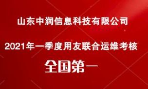 熱烈祝賀山東中潤2021年一季度用友聯(lián)合運維考核拔得頭籌