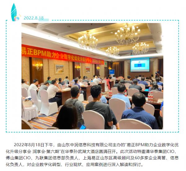 前言:?潤享會,是山東中潤信息科技有限公司自2019年推出的系列活動。潤,代表山東中潤,意指潤澤萬物;享,代表分享,意有貢獻(xiàn)的含義;潤享會,旨在將更多的企業(yè)管理及信息化資訊分享給企業(yè),與企業(yè)